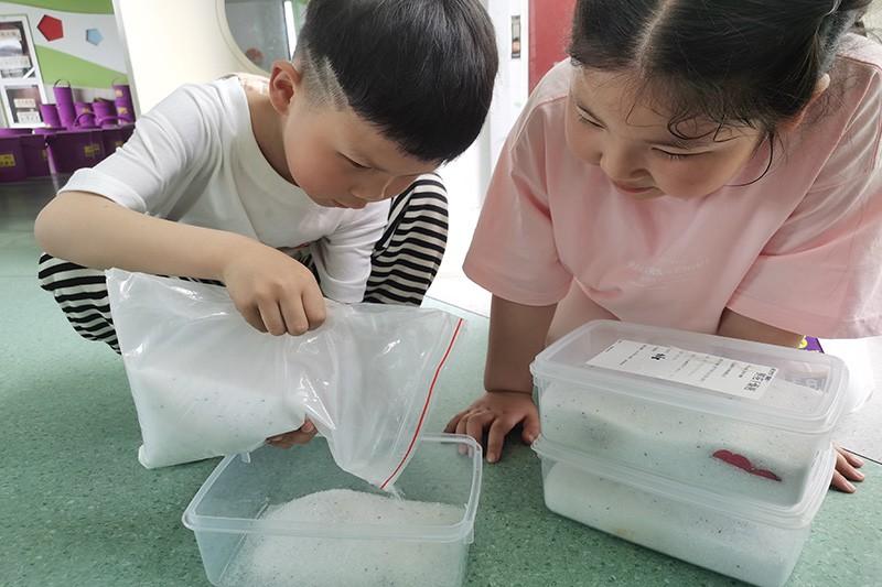 五天后,孩子们将干花从盒子里拿出了干花,“哇,鲜花脆脆的,一碰就掉啦。”“那我们轻一点。”“颜色居然还是原来的呢。”“简直太漂亮啦!”“真的很完美。”“花里的水分都被干燥剂吸干了呢。”孩子们七嘴八舌地说着。