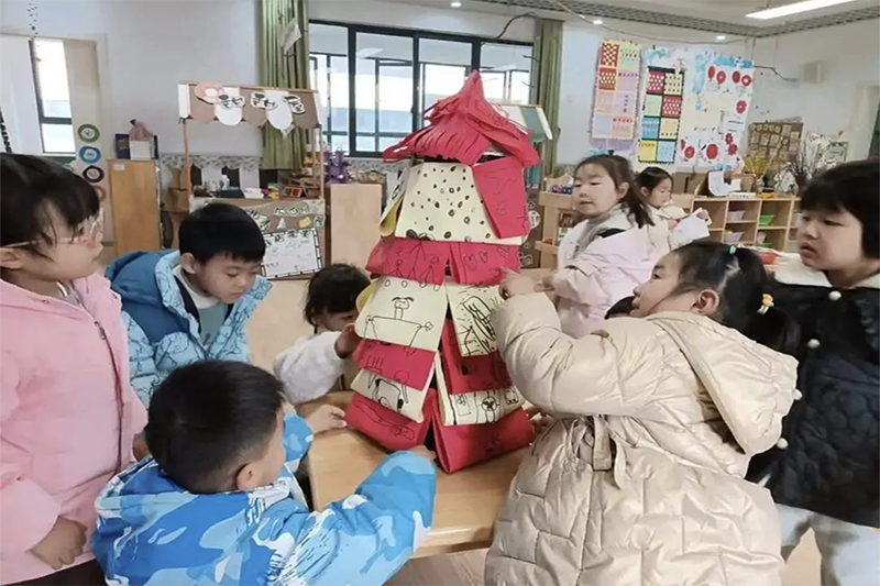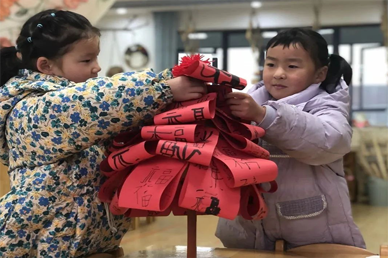 《3-6岁儿童学习与发展指南》里提出:“成人应创造条件带领幼儿观看或共同参与传统民间艺术和地方民俗文化活动,并支持幼儿自发的艺术表现和创造。”由此,横扇幼儿园围绕元旦开展了迎新年活动,既让幼儿体验到新年来临时的节日喜悦气氛,又进一步引导他们走进民间传统文化,全面发展幼儿的探究和动手能力。